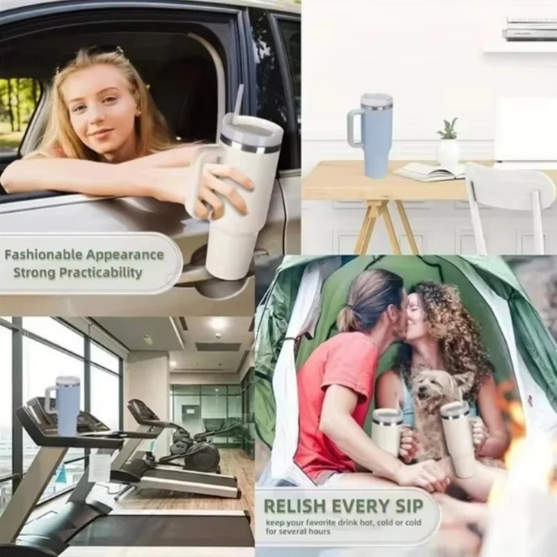 40oz 1200ML High Quality Insulated Tumbler with Handle Straw Double Wall Thermal Iced Travel Cup Coffee Cup Perfect Gift