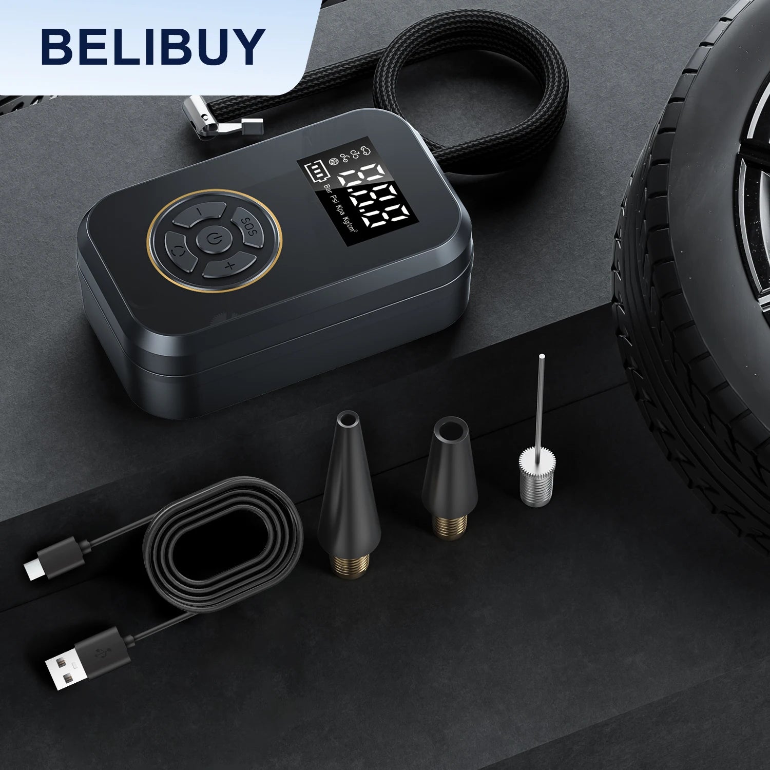 BELIBUY Portable Tire Inflator Rechargeable Electric Inflator For Car Bicycle Digital Air Compressor Football Ball Inflator Pump