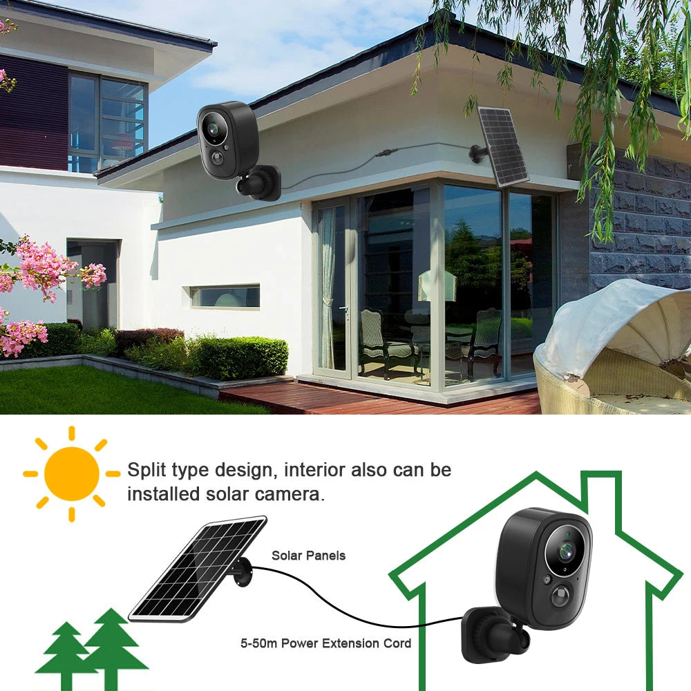 Separate design of solar panel and WIFI camera. Installation is more simple and convenient. Support 5-50M power extension cord. Solar cameras can also be installed indoors.