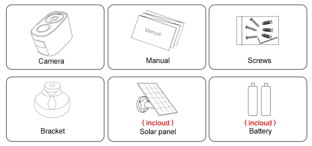 - Built-in rechargeable battery. When battery out of, you app will get low battery alert notifications to remind you to charge battery camera via 5V 1A/2A power adapter. Need 8 hours for full charged