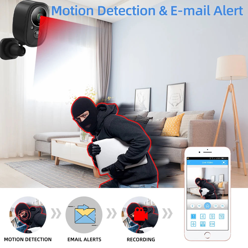 Send instant alerts and save motion-triggered videos to a micro SD card(up to 128GB) or cloud. The Upgraded surveillance camera is supported to adjust the detection sensitivity level personally